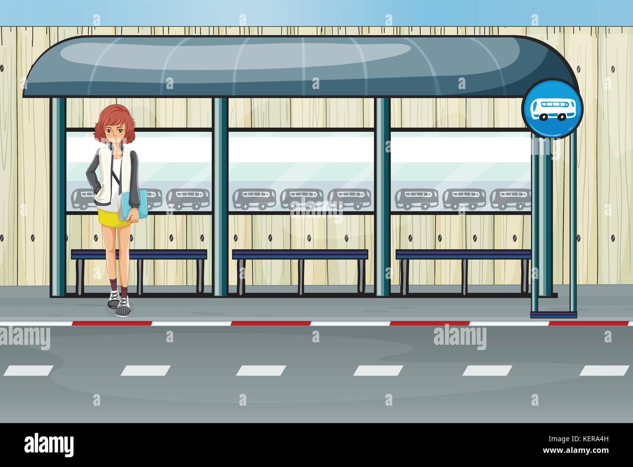 Illustration Of A Girl In The Bus Stop Stock Vector Image Art Alamy
