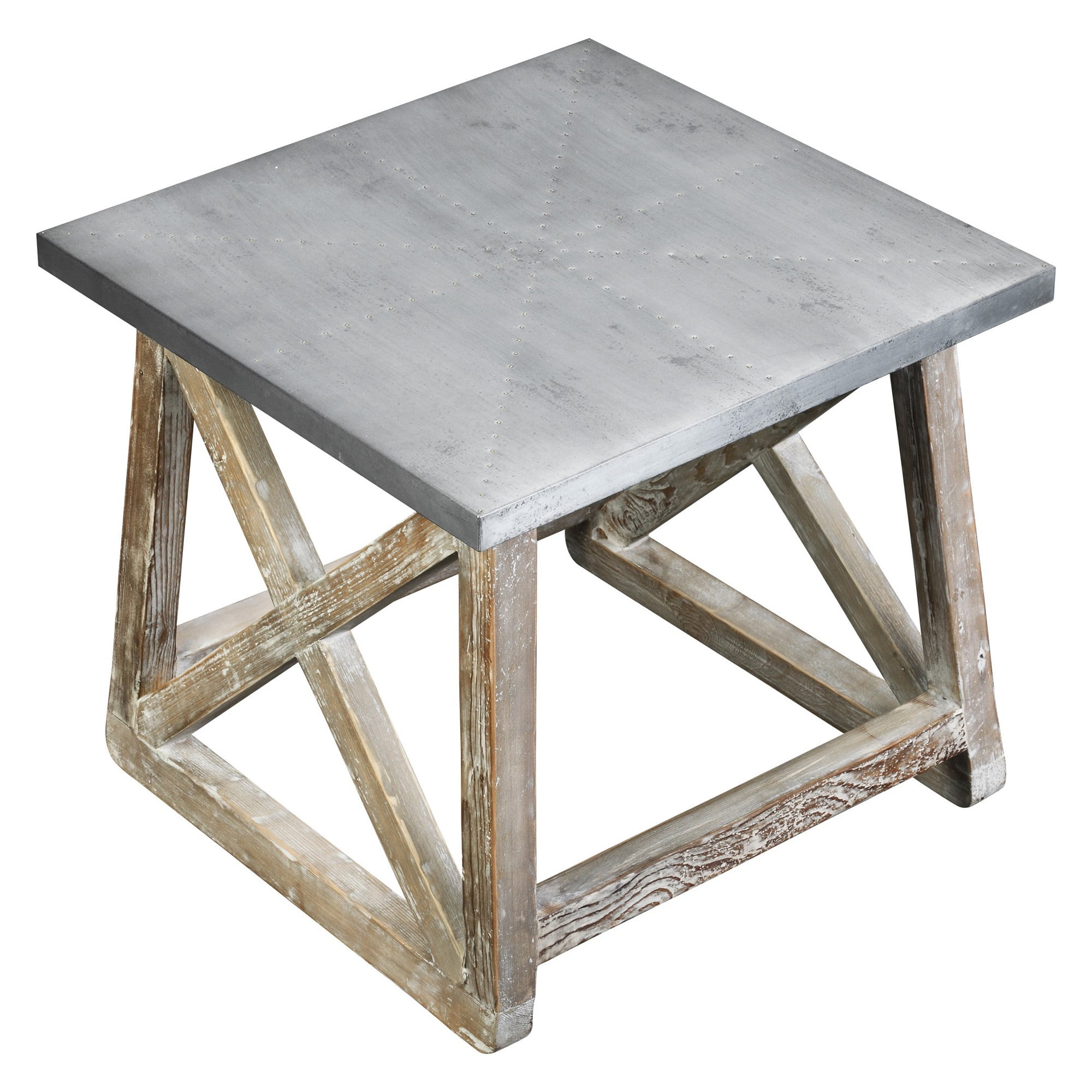 Zinc Top Wooden Side Table With Cross Beam Frame Gray And Washed White Walmart Com