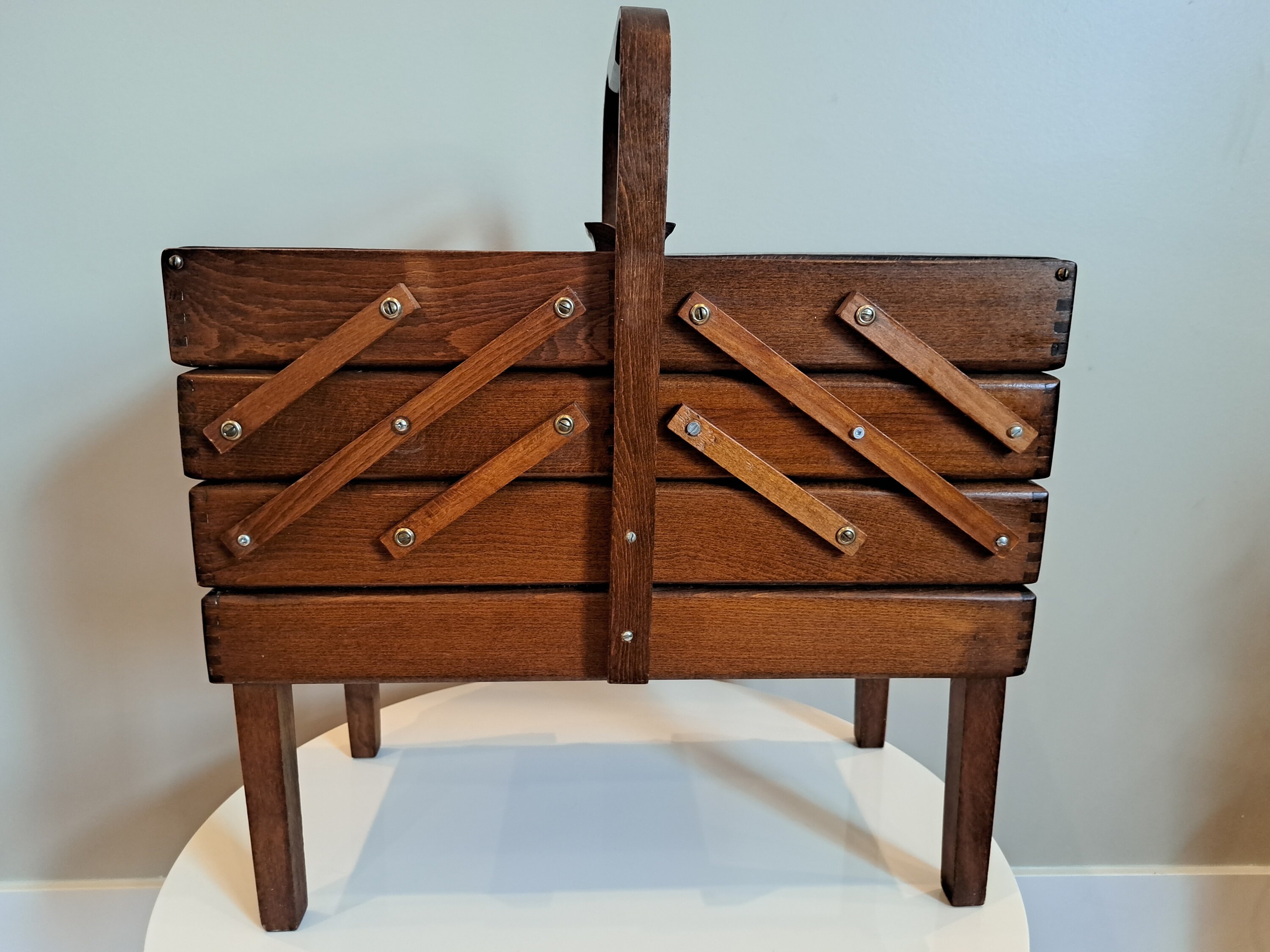 Singer Wood Accordion Style Sewing Box On Legs Folding Storage Etsy Wooden Sewing Box Sewing Box Sewing Storage Box